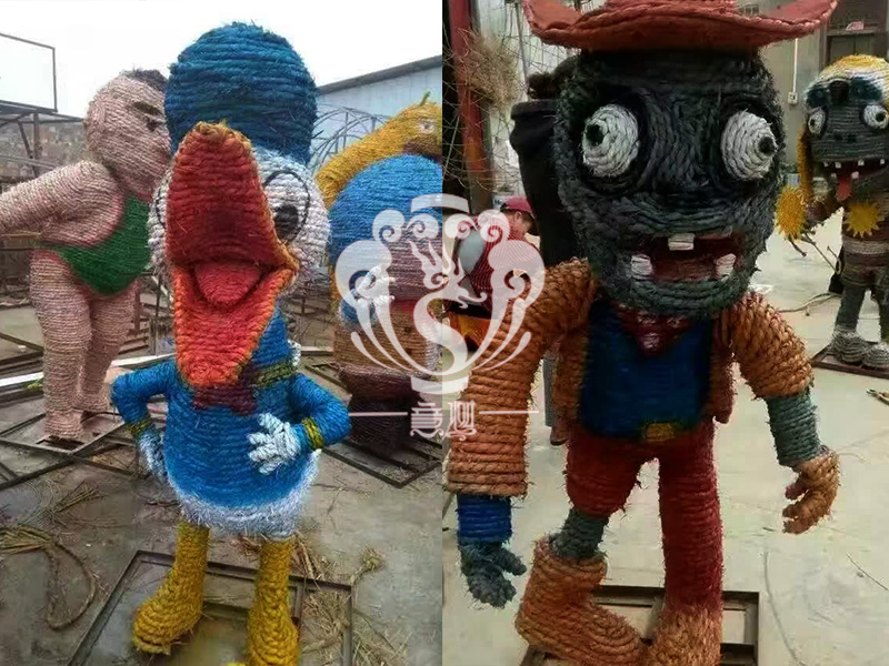 稻草人藝術,不僅充分利用的稻草秸稈制作出各種有趣的形象,與此同時還能減少秸稈的焚燒,為我們的藍天白云,子孫后代做一份貢獻!現在的精致稻草人藝術通常是由專業(yè)美術老師的造型放樣,然后由焊工師傅焊接出立體造型造型,然后以稻草或者稻草繩為材料編捆制作而成。
