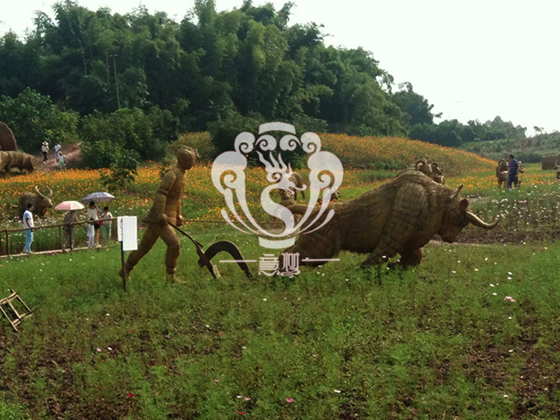 現在的精致稻草人藝術通常是由專業美術老師的造型放樣,然后由焊工師傅焊接出立體造型造型,然后以稻草或者稻草繩為材料編捆制作而成。