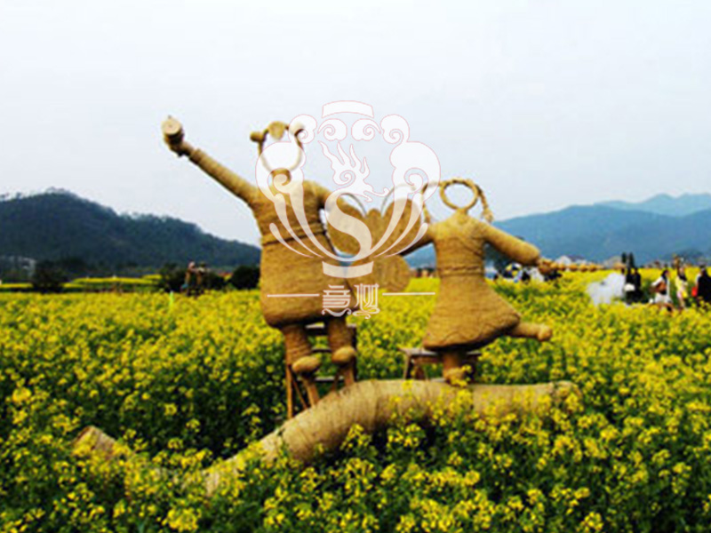 現在的精致稻草人藝術通常是由專業美術老師的造型放樣,然后由焊工師傅焊接出立體造型造型,然后以稻草或者稻草繩為材料編捆制作而成。