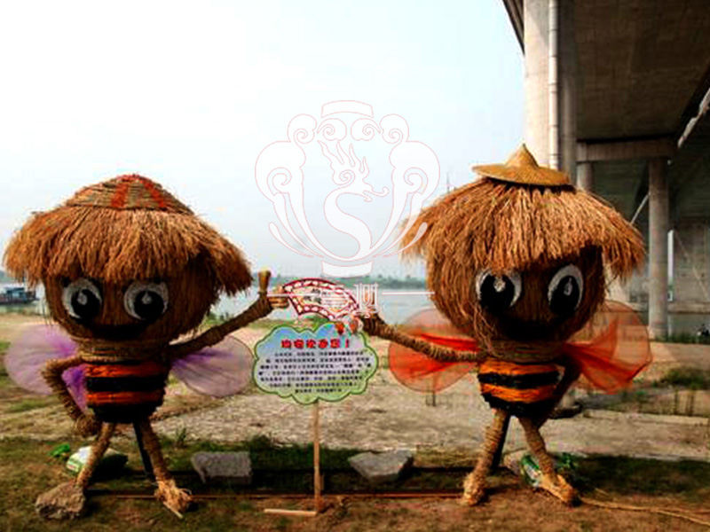 現在的精致稻草人藝術通常是由專業美術老師的造型放樣,然后由焊工師傅焊接出立體造型造型,然后以稻草或者稻草繩為材料編捆制作而成。