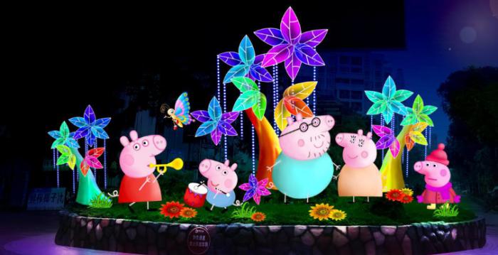 在景區入口處,映入眼簾的是《喜迎山莊》區域,該區域以大量色彩簡潔的氛圍燈,營造出夏季清涼的氣氛。步入其中,道路旁裝飾以美麗的鮮花、盛放的煙花預示著此次燈展的成功舉辦,小豬佩奇、吉祥青蛙萌態十足,火紅的燈籠烘托著燈展的熱鬧,在一片喜慶與祝福中,走進燈的海洋!