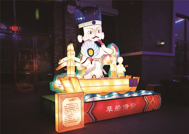 伴隨著夜幕降臨,散落在諾睿德非遺交流中心周圍的彩燈散發著柔和的光彩,彈著琴的“功夫熊貓”、桃園結義的劉關張……一組組彩燈再現影視劇中的經典畫面,彰顯著“電影搖籃”的氣質。