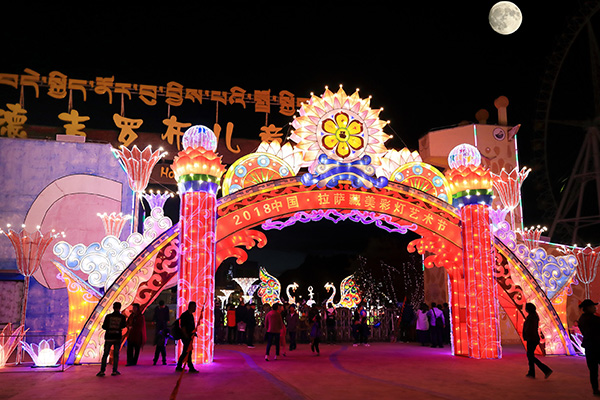 26日,由拉薩德吉羅布兒童游樂園主辦的2018中國拉薩藏美彩燈藝術節在柳梧新區德吉羅布兒童游樂園盛大開幕。