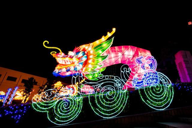 從海寧皮革城入口,進入峽石燈會核心展區,一組組彩燈融合著現代、古典、建筑、海寧文化等不同元素,光彩靈動,獨具匠心,讓人感受到極強的視覺震撼力。