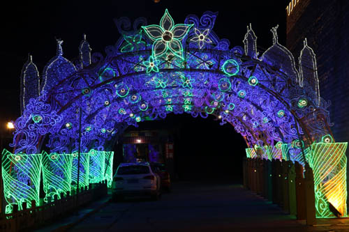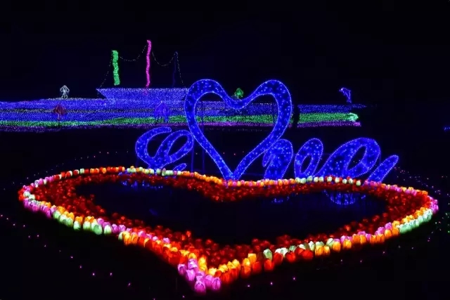 本次夢幻燈光秀以燈光科技文化為主線,分為愛國情愫、時光隧道、水中盛景、愛心通道、求婚LOVE五大板塊,設(shè)置了20多個燈組、50多個造型,通過LED霓虹燈飾與鋼架模型編成各種造型,以逼真的燈光造型、豐富的燈光種類、生動的場景再現(xiàn)、細致的燈光布置為特點,將燈光文化與前沿科技欣賞結(jié)合,讓市民在游玩中得到美感的體驗。