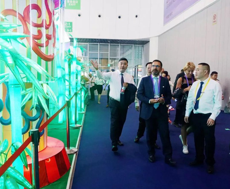 下午四時(shí)許,作為本屆西博會主賓國的意大利貴賓一行來到展位參觀,精美絕倫的燈組引得各領(lǐng)導(dǎo)與來賓頻頻稱贊,剛與集團(tuán)簽訂了“2019年意大利帕多瓦‘中國之光’國際燈展”項(xiàng)目的意方表示在觀看了集團(tuán)精彩的作品展示后,對于接下來即將展開的合作更加充滿信心和期待。
