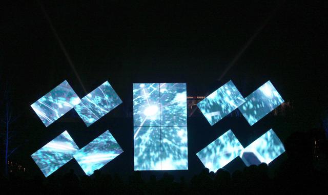 機(jī)械臂動(dòng)感屏繼承了虛擬樣機(jī)設(shè)計(jì)、液壓同步、單軸多電機(jī)驅(qū)動(dòng)以及實(shí)時(shí)位置檢測(cè)反饋等多項(xiàng)技術(shù),實(shí)現(xiàn)LED背景在任意空間的無(wú)縫拼接和連續(xù),配合視頻內(nèi)容完成平移、旋轉(zhuǎn)等各種自由拼圖,以實(shí)現(xiàn)視頻最佳的表達(dá)效果。由張藝謀創(chuàng)意團(tuán)隊(duì)成員領(lǐng)銜組成的創(chuàng)意團(tuán)隊(duì),對(duì)燈光秀機(jī)械臂移動(dòng)、機(jī)械臂上固定的顯示屏、電腦燈、樓體立面LED點(diǎn)屏幕以及配套的音樂(lè)進(jìn)行了整體的創(chuàng)意和編排。