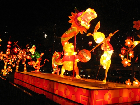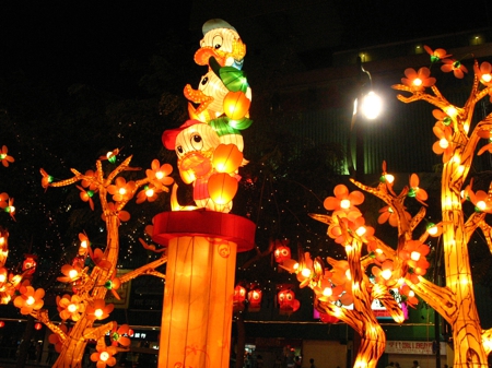 牛車水彩燈節(jié)活動(dòng)的主題是“桃滿花香牛車水,福豬迎春賀新歲”。春節(jié)的燈飾是歷年來最多的,包括406盞福豬彩燈、466盞蟠桃彩燈、1000盞印有十二生肖圖案的金幣彩燈及8處大型燈組。