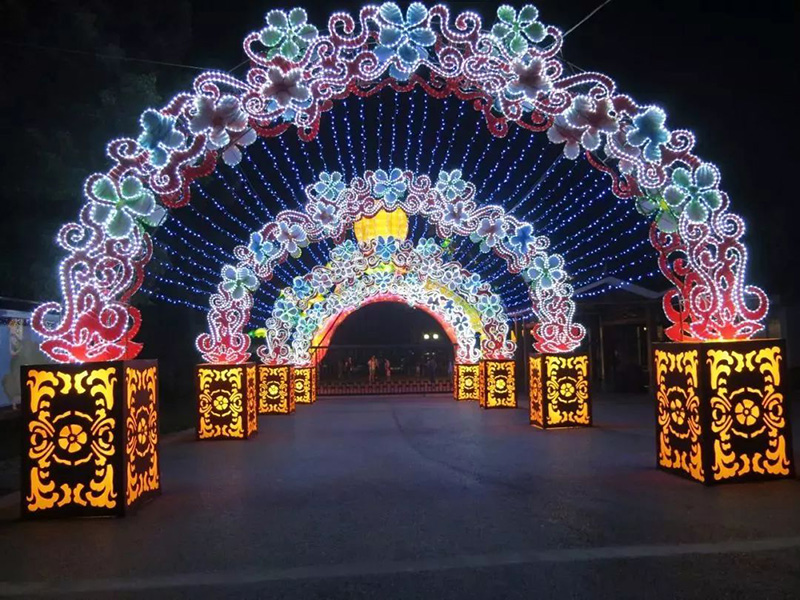 2018年第十屆梅園燈光藝術節主題為“梅好時光.祖國頌”,此次燈光藝術節由自貢彩燈制作近百位能工巧匠耗時一個月精心制作而成,燈組設計制作在關注節能環保的同時,大量采用新型LED光源,在傳承原有制作工藝的同時全面提升燈組夜間的光影效果。