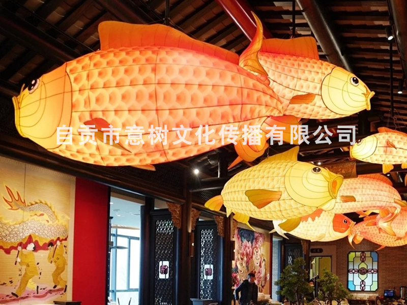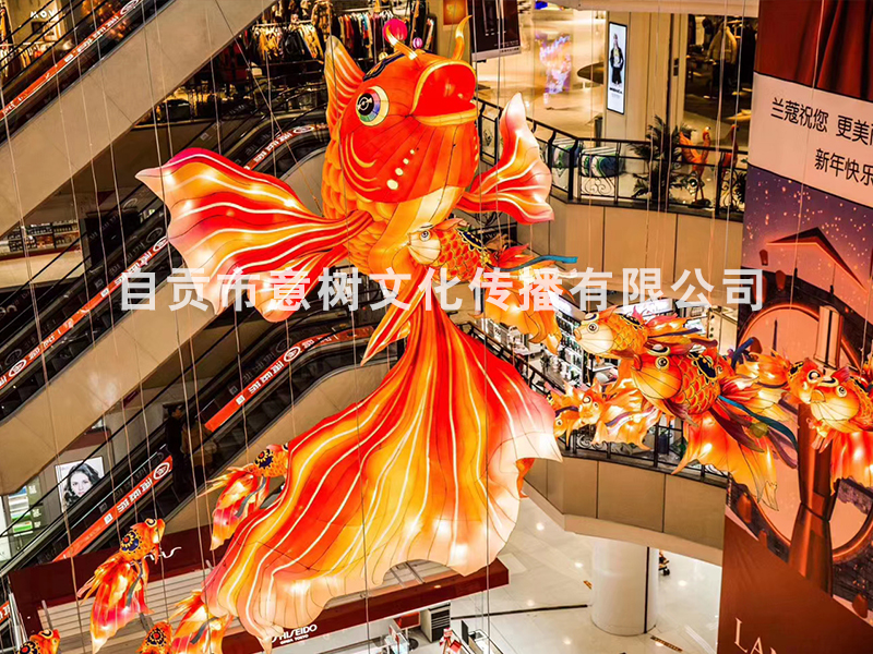 自貢市意樹文化傳播有限公司,采用獨(dú)特的絲藝造型,在形態(tài)上變化多變。經(jīng)過一個(gè)月工人的努力,為重慶某個(gè)大型商場制作的中庭魚燈終于安裝落地完成,深深的受到商場領(lǐng)導(dǎo)的稱贊,也得到了商場顧客的立足觀賞、點(diǎn)贊。